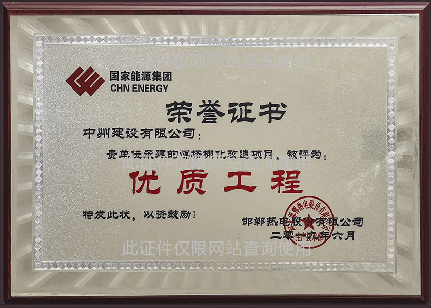 優(yōu)質(zhì)工程證書